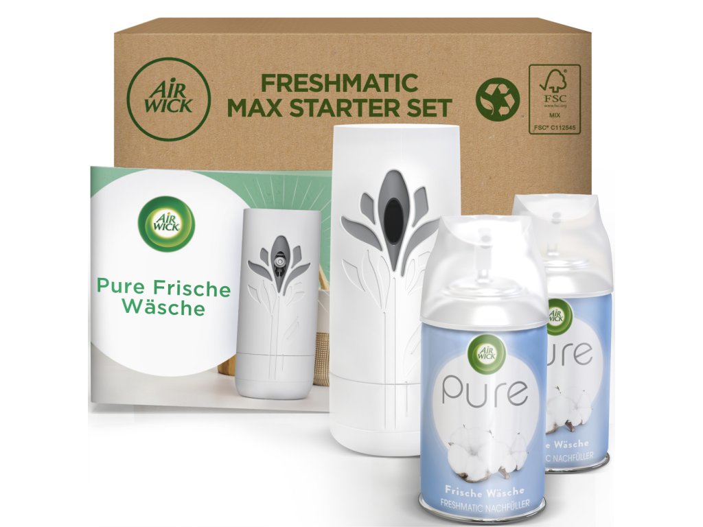 Air Wick Freshmatic Max Pure Starter Set – Osviežovač vzduchu Fresh Laundry (2×250 ml + difuzér)