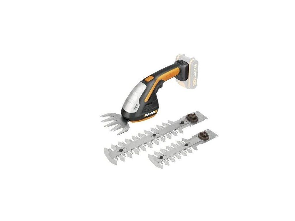 Akumulátorové nožnice na trávu Worx WG801E.9 / 3v1 / bez batérie a nabíjačky / rozstup zubov 8 mm / rozmery nožov (D x Š) 20 x 10 cm / 2 Ah / 20 V / čierna/oranžová-W01
