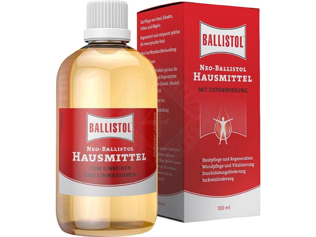 Vďaka unikátnemu zloženiu a prísne kontrolovanej výrobe sa NEO-BALLISTOL vyznačuje farmakologickou kvalitou a je ideálny ako všestranný ošetrujúci olej.