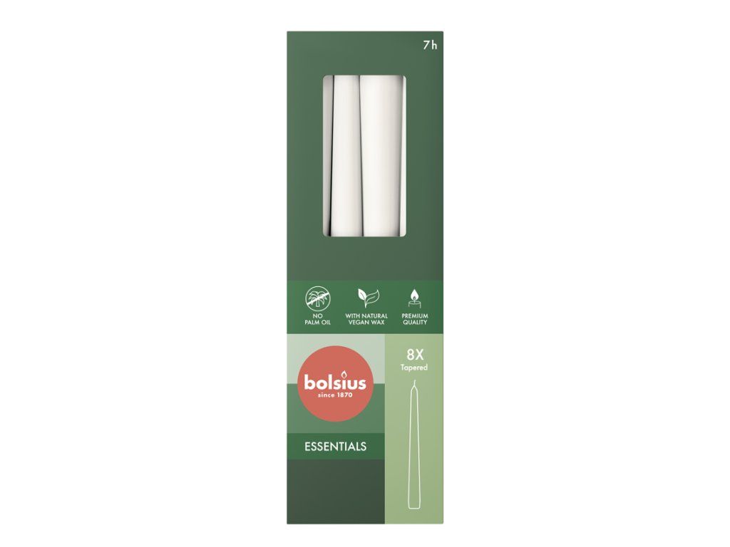 Bolsius Dekoratívna stolová sviečka zo série Essentials biela bez vône s výškou 17 cm, priemerom 2 cm a dobou horenia až 5 hodín