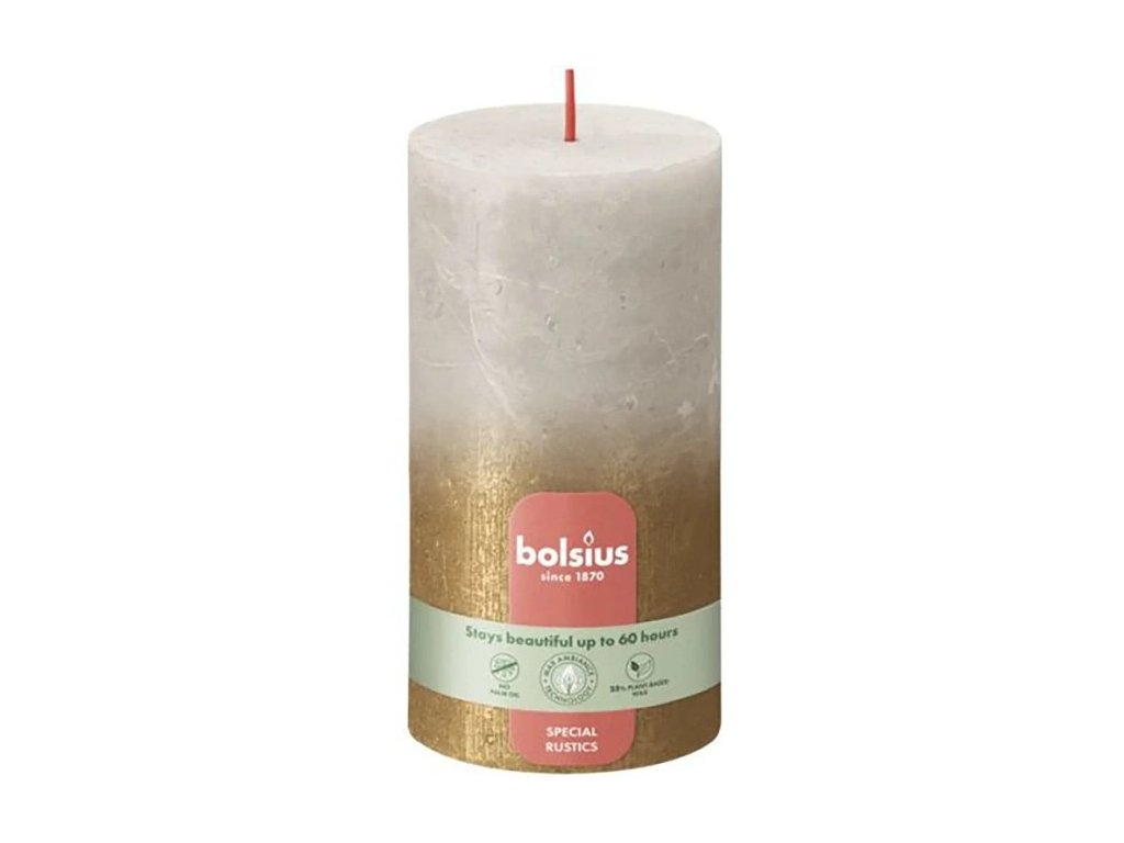 Dodajte svojmu interiéru elegantný a moderný vzhľad s rustikálnou trupovou sviečkou Bolsius, ktorá vďaka metalizovanému ombré efektu v odtieňoch Sandy Gray a Gold vnáša do priestoru jemné, ale štýlové svetlo. Sviečka je bez vône, čo ju robí ideálnou pre každú miestnosť, kde nechcete ovplyvniť vôňu, ale zároveň si užiť príjemné osvetlenie.
