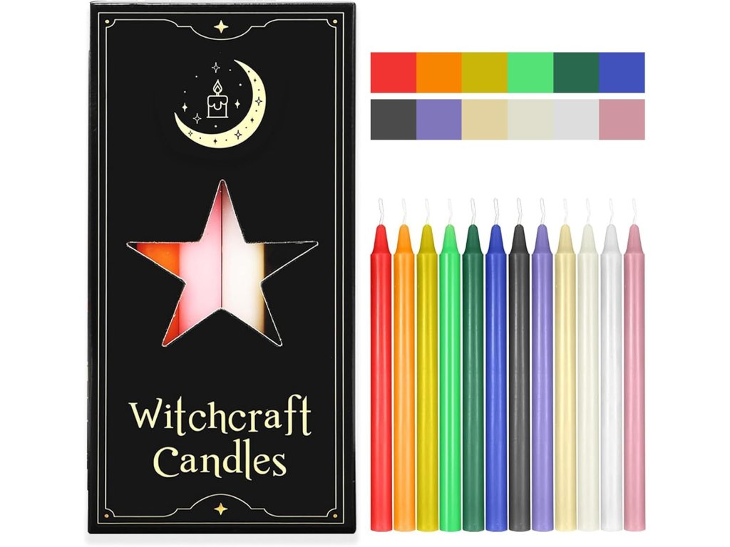 12 farebných tenkých sviečok: Kónická sviečka je dodávaná v krásnej darčekovej krabičke, ktorá je personalizovaným darčekom na svadby, narodeniny, Halloween, Deň vďakyvzdania, Vianoce a akékoľvek iné špeciálne príležitosti vo vašom živote. Farby obsiahnuté v každom balení: Modrá. Ružová. Fialová. Biela. Tmavozelená. Žltá. Červená. Svetlozelená. Čierna. Béžová. Oranžová. Svetložltá