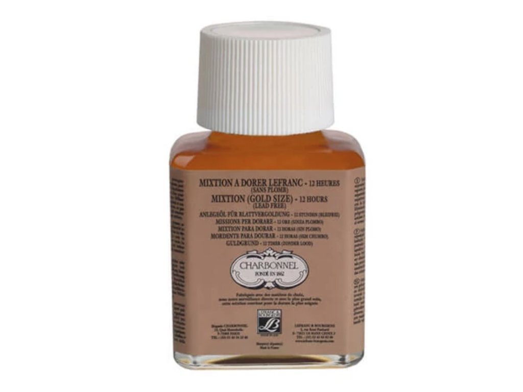Mixtion Charbonnel je tradičný olejový lepiaci lak určený pre zlátenie kovovými plátkami a dekoratívne povrchové úpravy. Vyrábaný podľa pôvodnej receptúry zo starostlivo vybraných živíc a olejov, zaručuje vynikajúcu priľnavosť a čistý, lesklý výsledok. Tento 12-hodinový mixtion poskytuje dostatok času na precíznu prácu a aplikáciu na väčšie plochy. Po zaschnutí vytvára ideálne lepivý film, ktorý zabezpečí rovnomerné uchytenie plátkového zlata, striebra či imitácií. Je obľúbený medzi reštaurátormi, ikonopiscami a výtvarníkmi pre svoju spoľahlivosť a dlhotrvajúci efekt. Prémiová francúzska kvalita od Charbonnel.