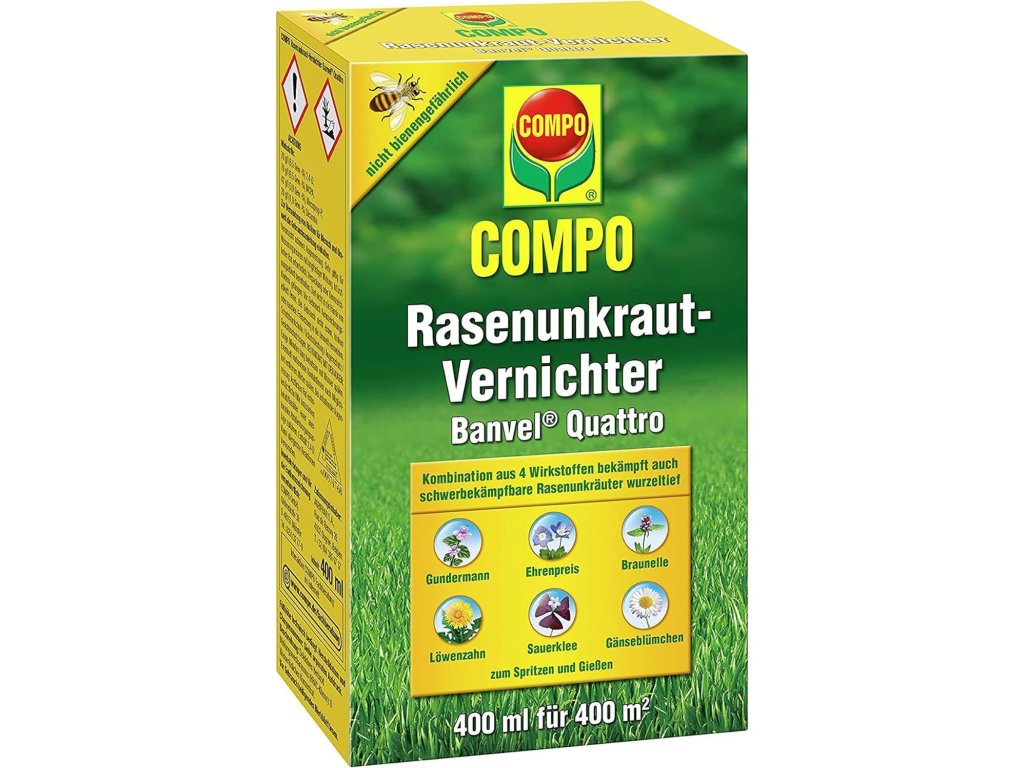 Compo Herbicíd na trávniky Banvel Quattro 400 ml je účinný selektívny herbicíd určený na ničenie dvojklíčnolistových burín v okrasných trávnikoch. Jeho špeciálne zloženie pôsobí priamo na korene burín a zabezpečuje ich úplné odstránenie bez poškodenia trávy. Prípravok obsahuje kombináciu štyroch účinných látok, ktoré zaručujú široké spektrum účinnosti a rýchly výsledok. Stačí ho riediť s vodou podľa návodu a aplikovať pomocou postrekovača. Je ideálny pre starostlivosť o záhrady, parky a športové trávniky. Výsledkom je hustý, zdravý a čistý trávnik bez burín.