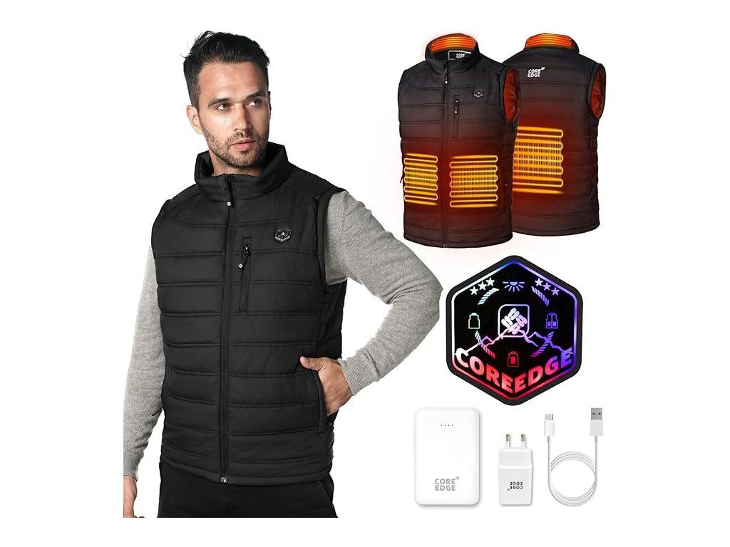 CoreEdge Pánska vyhrievaná vesta s 10 000 mAh power bankou je praktická a pohodlná vrchná vrstva oblečenia navrhnutá tak, aby udržiavala telesné teplo v chladnom počasí pomocou elektrického vyhrievania. Táto vesta je ideálna pre mužov, ktorí trávia čas vonku pri práci, turistike, lyžovaní alebo pri bežnom pobyte v zime, a chce si užívať komfort tepla bez objemnej vrstvy oblečenia. Integrovaný systém vyhrievania sa napája na 10 000 mAh power banku (súčasť balenia), ktorá zaisťuje dlhú výdrž tepla počas dňa bez potreby častého nabíjania.