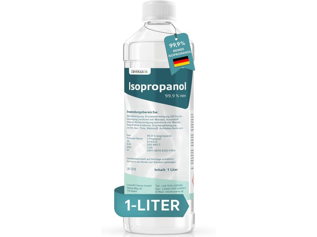 Vhodný na čistenie elektroniky, dosiek, 3D tlač (čistenie tlačových dosiek), ako riedidlo na farby a na mnoho ďalších účelov.