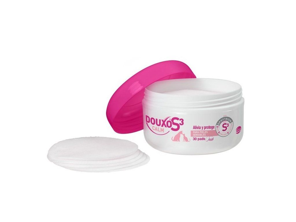 DOUXO S3 CALM lenitivo, 30 PADS –vankúšiky na ošetrenie citlivej pokožky mačiek a psov - bavlnené tampóny pre podráždenú a citlivú pokožku. Upokojuje, posilňuje a vyrovnáva ekosystém pokožky.