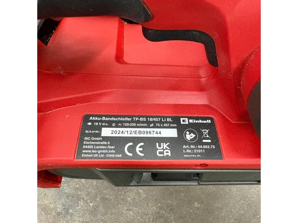 Einhell Professional TP‑BS 18/457 Li BL je profesionálna akumulátorová pásová brúska určená na bezkablové brúsenie veľkých plôch dreva, kovu alebo iných materiálov bez obmedzenia elektrickým káblom. Je súčasťou POWER X-CHANGE 18 V systému, takže môžete použiť rovnaké batérie a nabíjačky ako pri ďalších nástrojoch tejto série (batéria a nabíjačka nie sú súčasťou balenia).