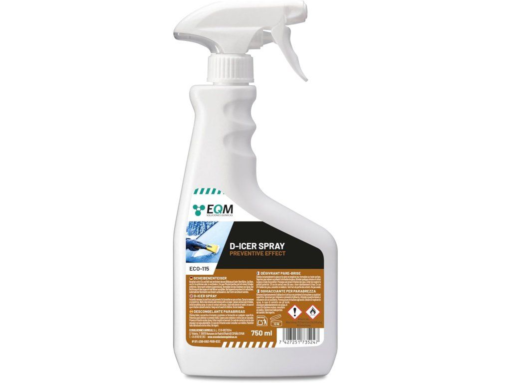 EQM – ECO-115 – Odstraňovač námrazy na čelné sklo 750 ml je praktický prípravok určený na rýchle a účinné odstránenie námrazy, ľadu a tenkej vrstvy snehu z čelných skiel automobilov. Sprej pomáha uvoľniť zamrznuté nečistoty a zlepšuje viditeľnosť počas zimných dní, čím prispieva k bezpečnejšej jazde. Vďaka svojej účinnej receptúre začne pôsobiť okamžite po aplikácii a pomáha rozpúšťať ľad bez potreby mechanického škrabania.