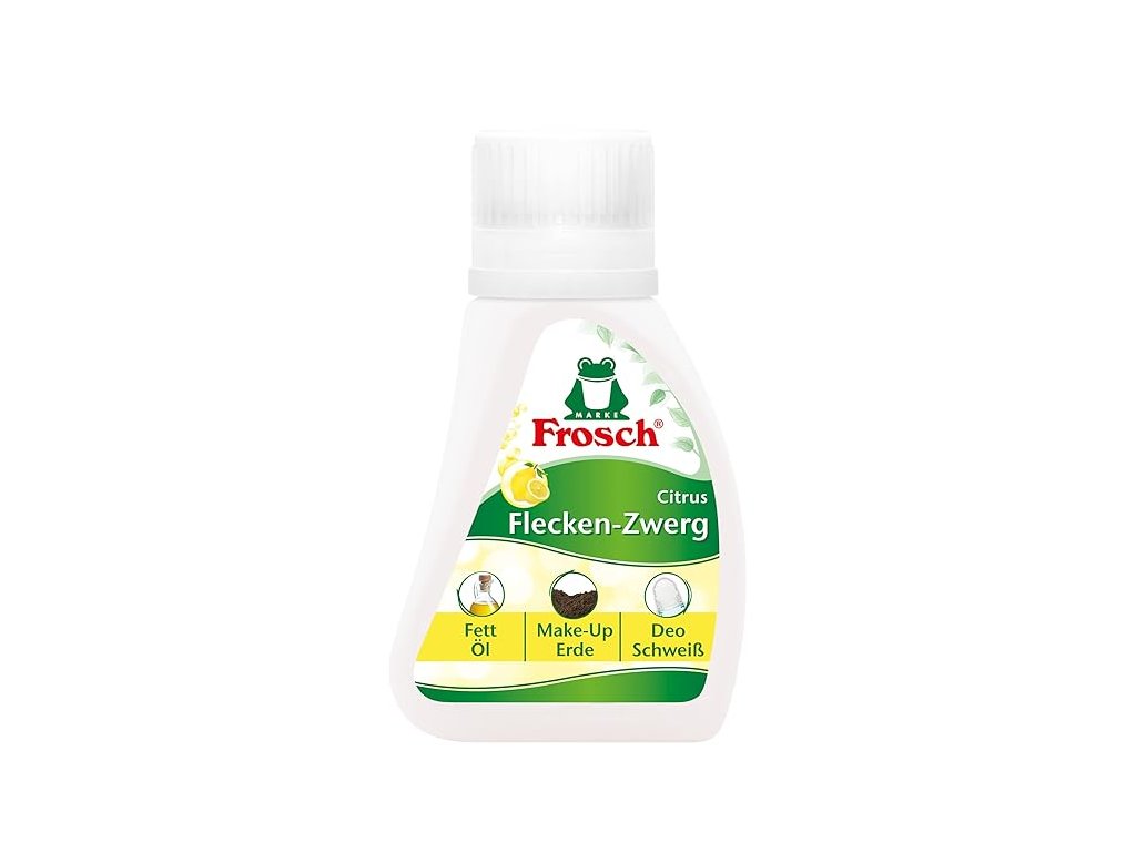 Frosch Citrus Stain Gnome je výkonný odstraňovač škvŕn pre rýchlu a účinnú predúpravu bielizne. Farebný odstraňovač škvŕn je vhodný na biele a farebné pranie, ako aj na všetky druhy textílií okrem hodvábu. Výkonné a vegánske zloženie s citrátom, soľou kyseliny citrónovej, spoľahlivo odstraňuje mastnotu a škvrny obsahujúce pigment, ako sú mastnota, olej, make-up, nečistoty, škvrny od dezodorantu a potu.