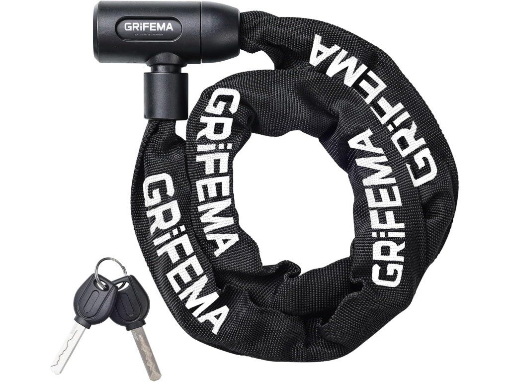 GRIFEMA GA1201-12 vysoko bezpečnostný zámok na bicykel s 2 kľúčmi je praktický reťazový zámok určený na každodenné zabezpečenie bicykla, kolobežky alebo iných predmetov. Ponúka kombináciu pevnej oceľovej reťaze a ochranného textilného obalu, ktorý chráni rám pred poškriabaním a zvyšuje komfort pri manipulácii.