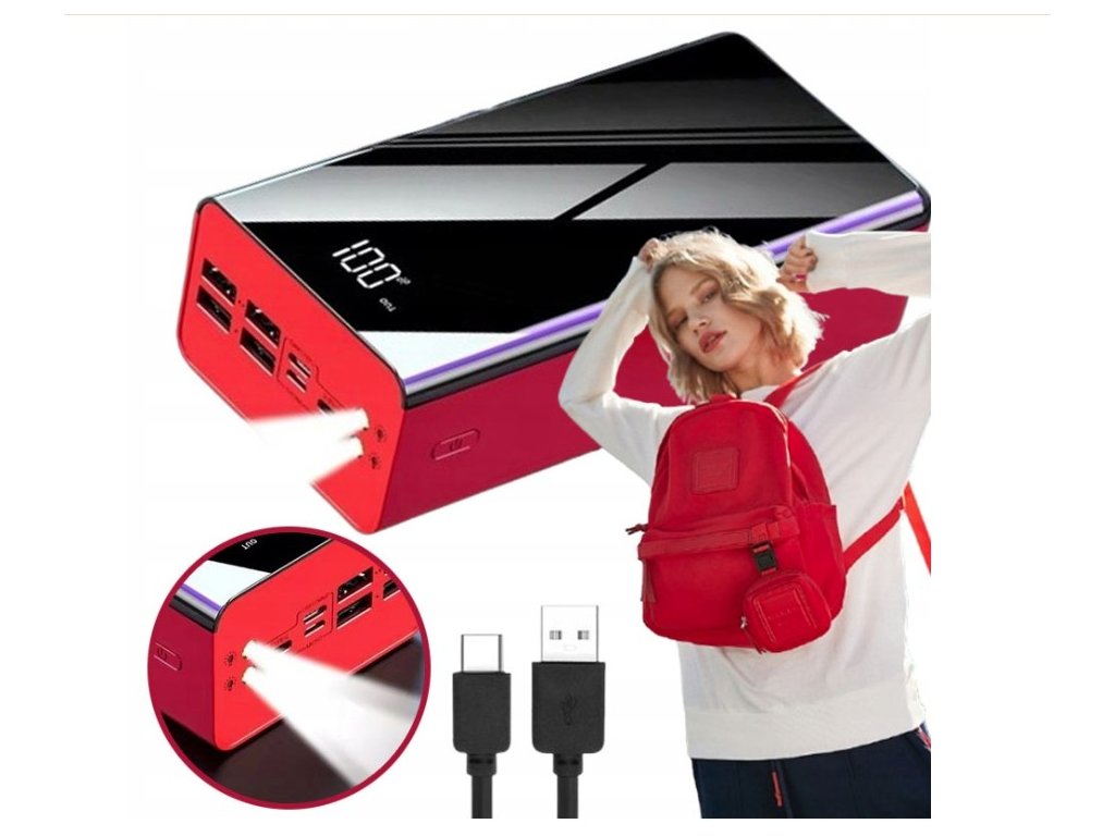 Na prednej strane často nájdete LED displej, ktorý zobrazuje presnú úroveň zostávajúcej energie v percentách, takže máte vždy prehľad o tom, koľko výkonu ešte máte k dispozícii. Napriek veľkej kapacite je powerbanka konštruovaná tak, aby bola relatívne kompaktná a prenosná, a jej červené prevedenie dodáva moderný a dynamický vzhľad, ktorý vynikne v batohu aj na stole.
