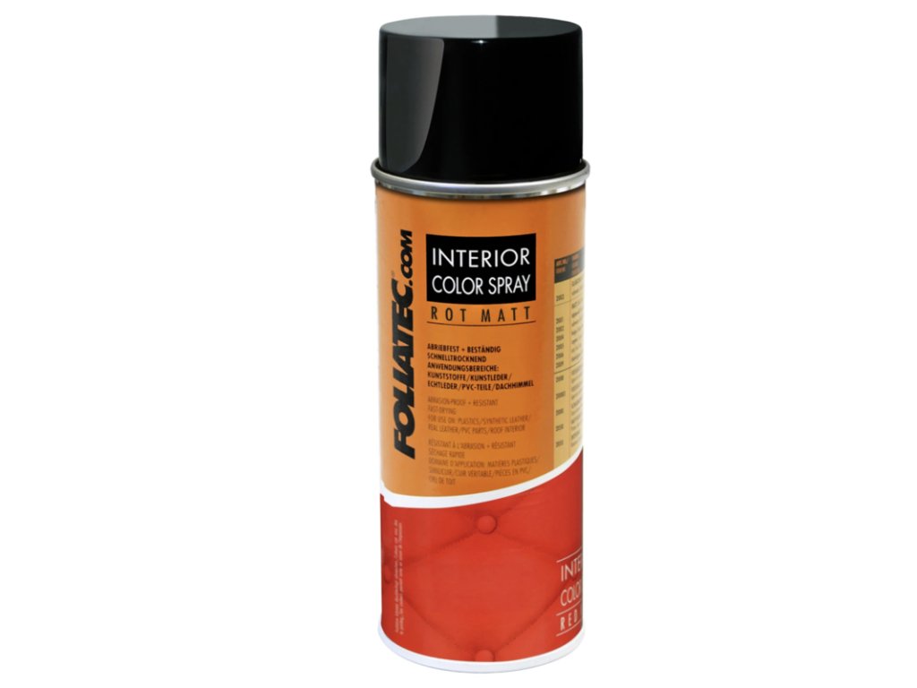 Interior Colour Spray je vhodný na plasty, umelú kožu, pravú kožu, PVC diely a hladké, napnuté tkaniny.