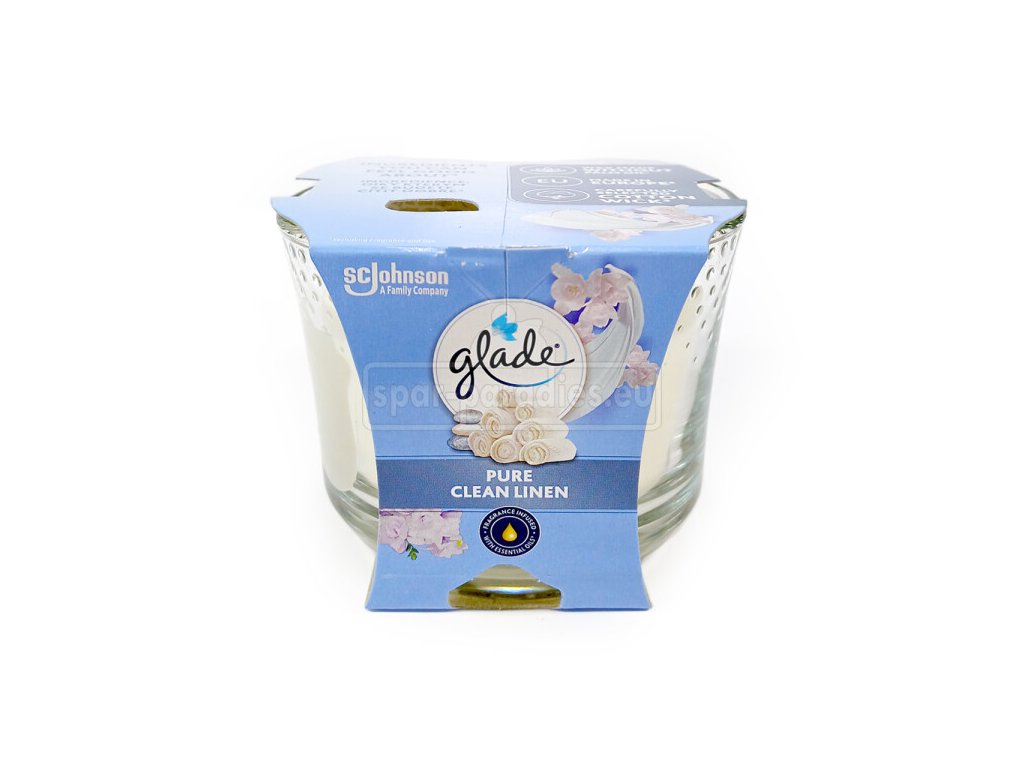 Sviečka Glade Clean Linen s jemnou vôňou sviežeho vánku a čerstvo vypraného prádla si zamilujete.