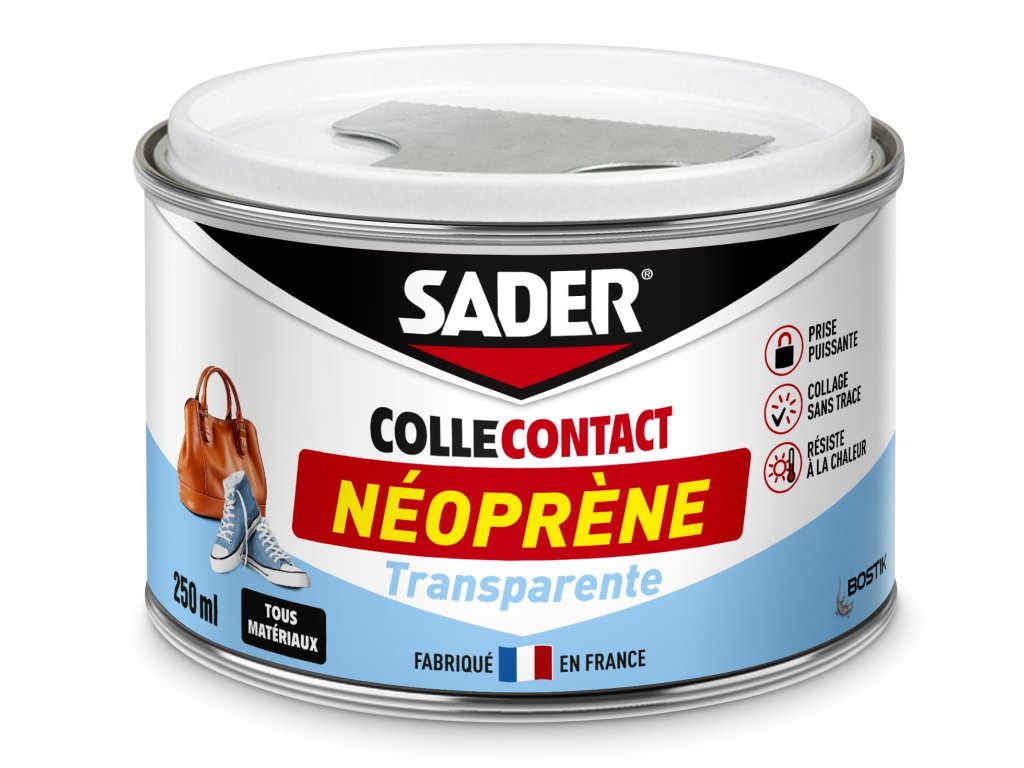 Priehľadné kontaktné lepidlo Sader, neoprénový typ novej generácie: superaktivované zloženie (polovičné množstvo rozpúšťadiel). priesvitná gélová textúra pre bezšvíkové lepenie.