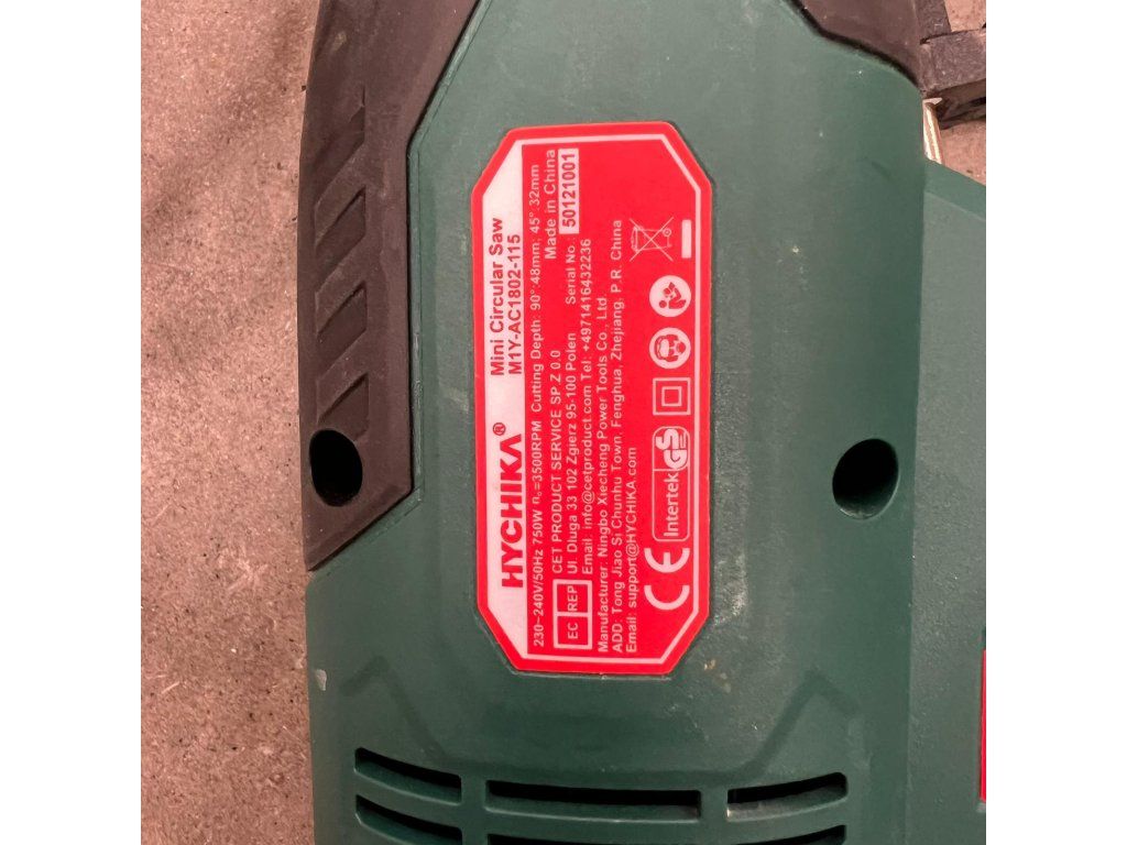 Kotúčová píla HYCHIKA 750 W (3500 ot./min, M1Y‑AC1802‑115) je kompaktná a výkonná elektrická píla určená na presné a rýchle rezanie drevených materiálov, dosiek, latiek, dosiek OSB alebo drevených hranolov v domácich dielňach a pri hobby projektoch.