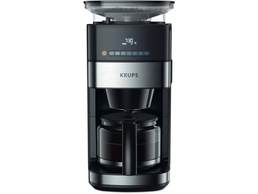 Krups KM8328 Grind Aroma je kávovar s mlynčekom a časovačom, ktorý pripraví až 15 šálok čerstvej kávy s možnosťou nastavenia mletia a automatickým vypnutím pre pohodlné používanie.