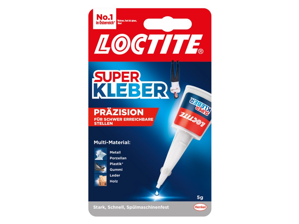Superlepidlo Loctite s extra dlhou dávkovacou špičkou bez upchávania pre presné dávkovanie. Cyanoakrylátové lepidlo bez rozpúšťadiel okamžite a neviditeľne lepí na najrôznejšie materiály, ako napr. porcelán, drevo, kožu, kovy, gumu, lepenku, papier a mnohé plasty. Pre veľké plochy aj malé diely!