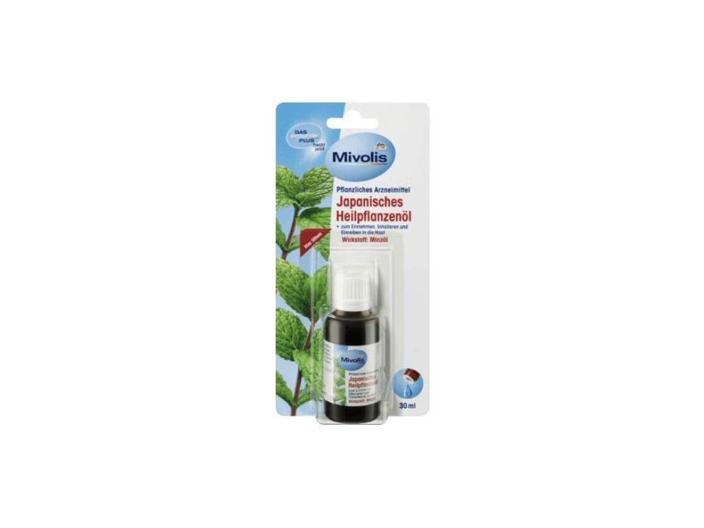 Mivolis Japonský liečivý rastlinný olej je prostriedok na liečbu žalúdočno-črevných ťažkostí / prostriedok na liečbu ochorení dýchacích ciest / na vtieranie pri bolestiach svalov a poruchách podobných nervovým bolestiam