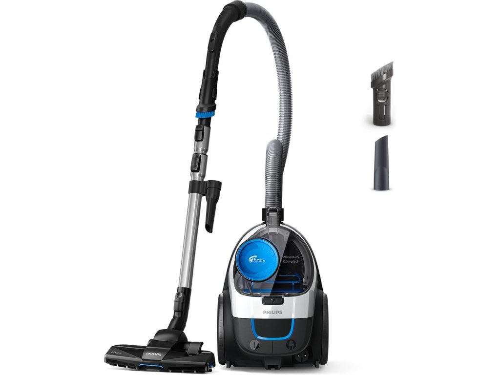 Philips PowerPro Compact FC9332/09 je bezvreckový vysávač s výkonom 900 W, HEPA filtrom a kefou TriActive, ktorý zaručuje efektívne a hygienické vysávanie v domácnosti.
