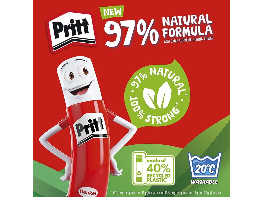 Vhodné pre deti – S 97 % prírodnými zložkami* je lepidlo v tyčinke ideálne pre školské potreby a po náročných remeselných činnostiach sa dá dokonca vyprať pri nízkych teplotách.