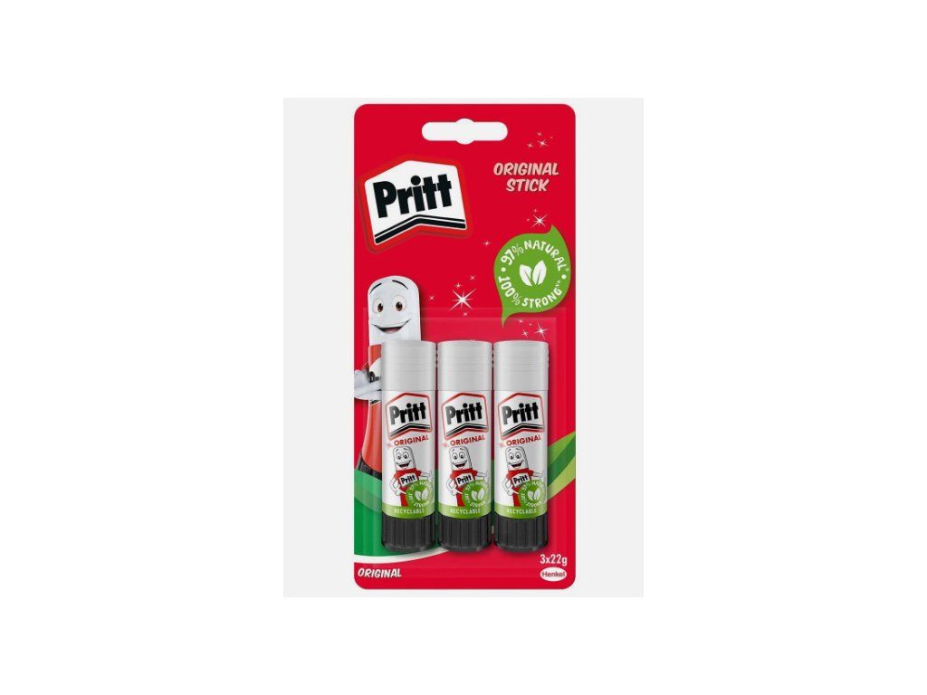 Pritt Stick Glue Stick – balenie 3 × 22 g je klasický tyčinkový lepidlový systém navrhnutý pre školu, kanceláriu a kreatívne projekty. Produkt je bez rozpúšťadiel, PVC a bezpečný pre deti, s až 97 % prírodnej bázy (vrátane vody), takže je vhodný aj pre školské práce a detské tvorenie. Lepidlo sa ľahko používa — tyčinku jednoducho vytáčaš podľa potreby a nanášaš rovnomernú vrstvu na lepený povrch bez roztekania. Po zaschnutí tvorí pevný a trvácny spoj vhodný pre papier, kartón, plsti či fotografie.