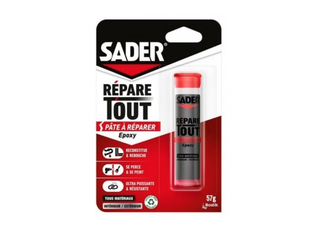 SADER Répare Tout Epoxy je silná dvojzložková opravná hmota, ktorá sa aktivuje miešaním a za pár minút stvrdne ako kameň.