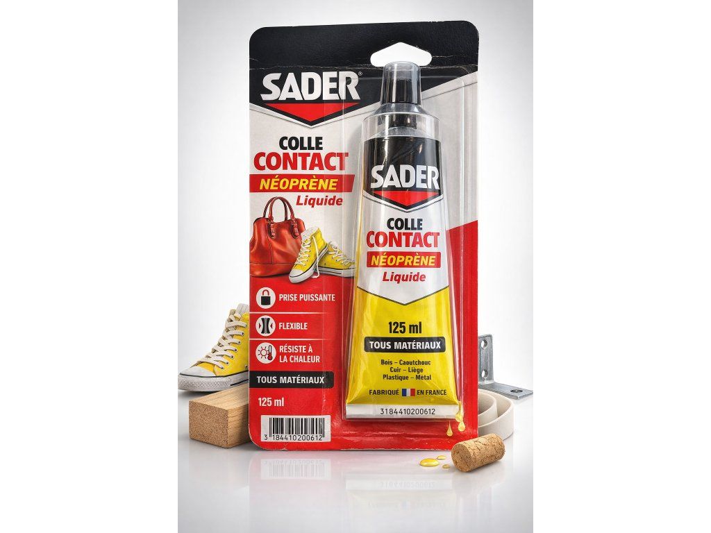 SADER Colle Contact Néoprène Liquid je vysoko kvalitné kontaktné lepidlo na báze neoprénu určené na pevné, pružné a odolné lepenie rôznych materiálov. Vďaka svojej silnej priľnavosti vytvára okamžitý a trvácny spoj, ktorý je zároveň flexibilný a odolný voči teplu.