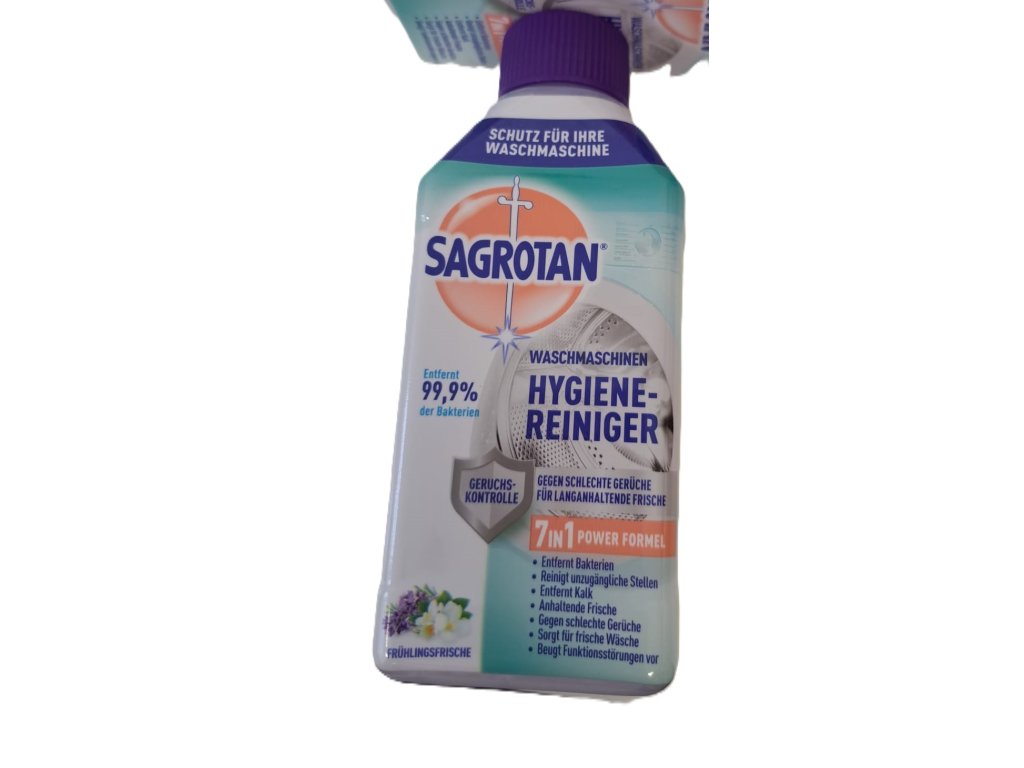 Hygienický čistič Sagrotan odstraňuje nečistoty a baktérie, ktoré sa hromadia v práčke a spôsobujú nepríjemné pachy.