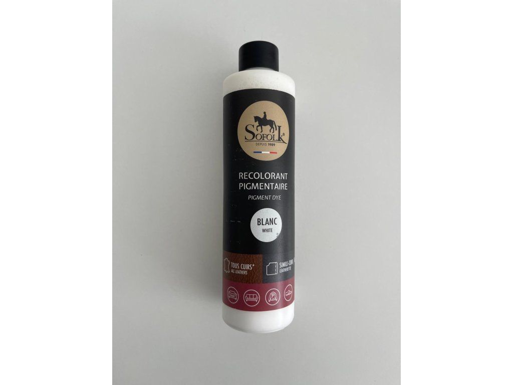 SOFOLK recolorant pigmentaire, Blanc 250 ml - Krycia farba na kožené čalúnenie Sofolk biela, 250ml - Je extrémne odolný voči opotrebovaniu a vydrží dlhé roky bez údržby. Nevyžaduje základný náter ani fixátor farby.