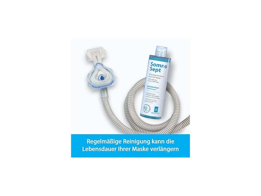 Táto súprava je ideálna na dôkladné a zároveň šetrné čistenie CPAP masiek a CPAP hadíc. Pripravte umývací roztok SomnoSept, vyčistite hadicu a masku kefou, vysušte - hotovo.