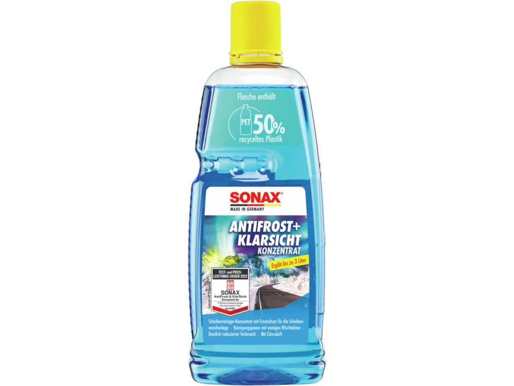 Koncentrát proti zamrznutiu na sklá SONAX. Zabraňuje zamrznutiu systému ostrekovačov a zamrznutiu trysiek.