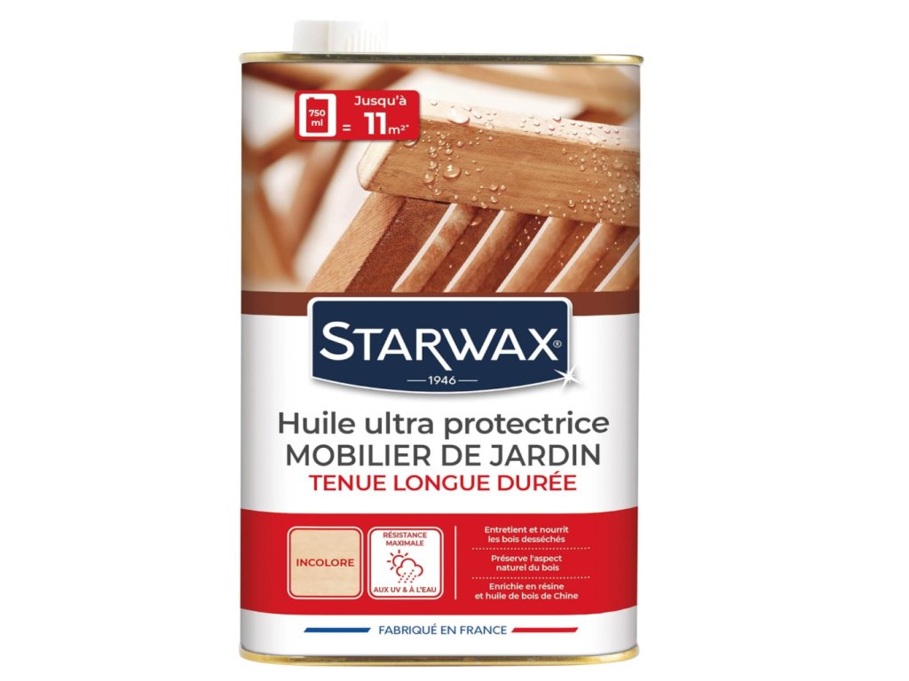 Starwax Huile Ultra Protectrice je výnimočný ochranný olej pre záhradný nábytok z dreva, navrhnutý na predĺženie životnosti a zachovanie prirodzeného vzhľadu.