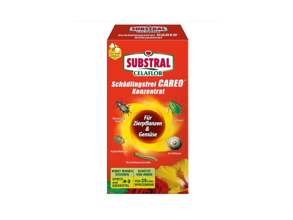 Substral Celaflor Schädlingsfrei CAREO Konzentrat je koncentrovaný insekticídny prostriedok pre ochranu rastlín pred škodcami. Je určený na domáce a záhradné použitie a pomáha účinne eliminovať rôznych savých aj žravých škodcov na okrasných rastlinách, zelenine alebo ovocí.