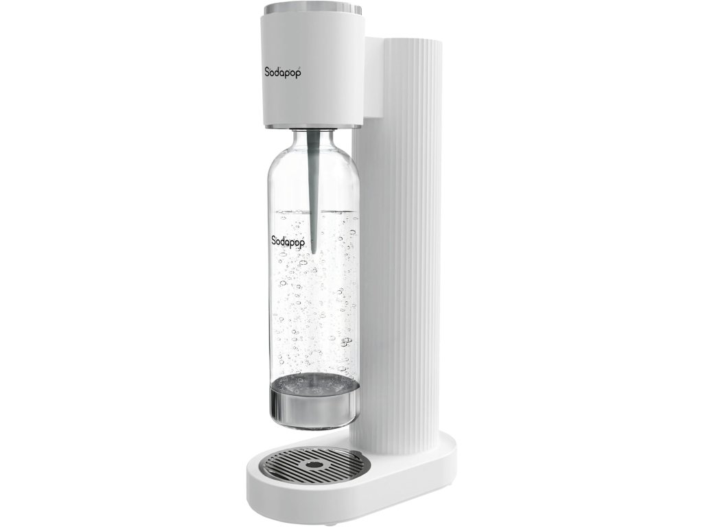 Sodapop Cooper biely je kompaktný a štýlový bublinkovač s PET fľašou, umožňuje rýchle sýtenie vody doma, šetrí miesto a znižuje používanie jednorazových fliaš.