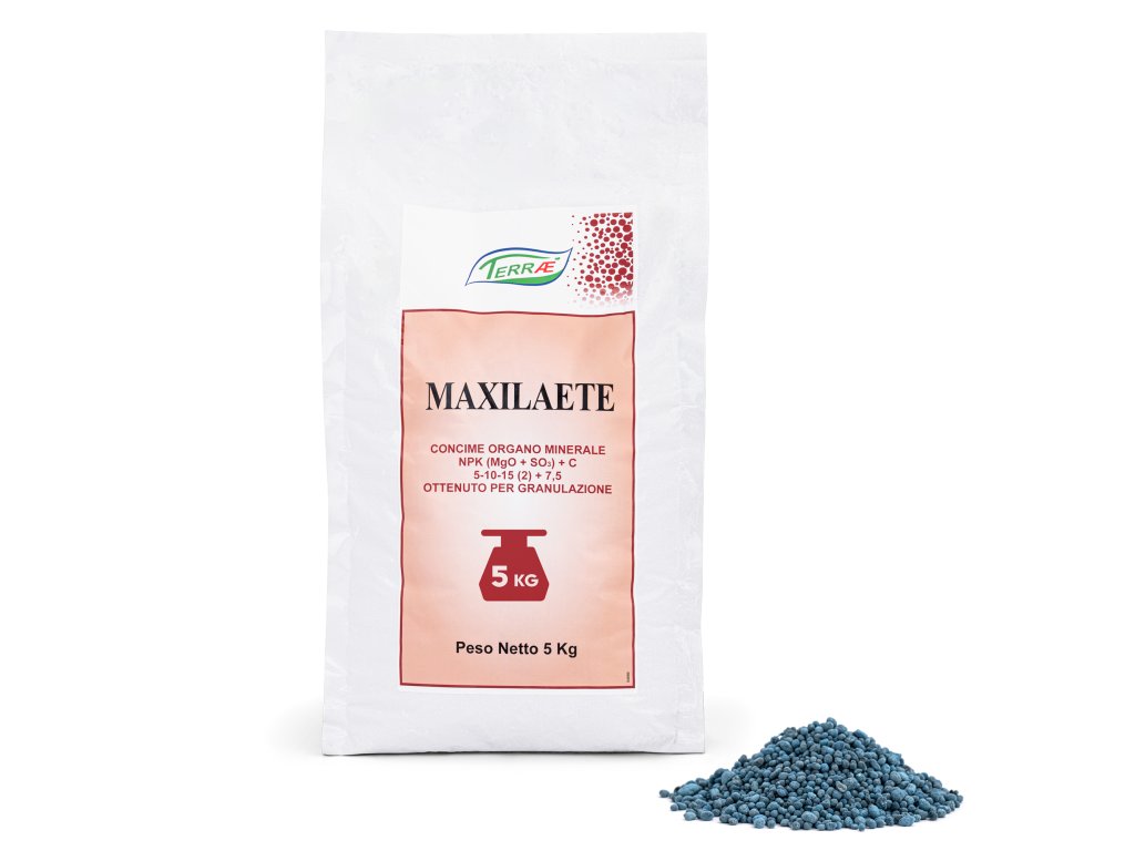 Terrae Maxilaete 5 kg je granulovaný organo-minerálny hnojivový produkt (concime), určený predovšetkým na starostlivosť o trávnik a rastliny v záhrade
