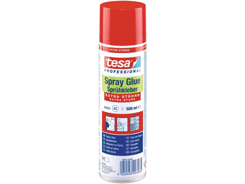Profesionálne sprejové lepidlo Tesa® 60022 Extra Strong 500 ml je mimoriadne silné lepidlo vytvárajúce film, určené na trvalé lepenie materiálov, ako sú textílie, plasty, lepenka, penová guma, izolačné materiály, vinyl, koža, umelá koža a guma, navzájom alebo s kovom a drevom.
