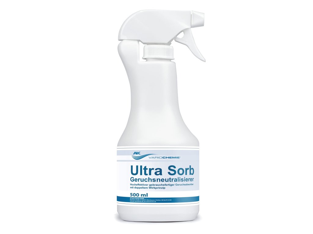 AK VARIOCHEMIE Ultra Sorb Odour Eliminator, 500 ml - Neutralizér zápachu pre extrémne prípady, 500 ml - Vysoko koncentrovaný: vysoko účinný pohlcovač pachov, s dvojitým princípom účinku - viaže pachy a dezodoruje, náhle viaže silné pachové emisie.