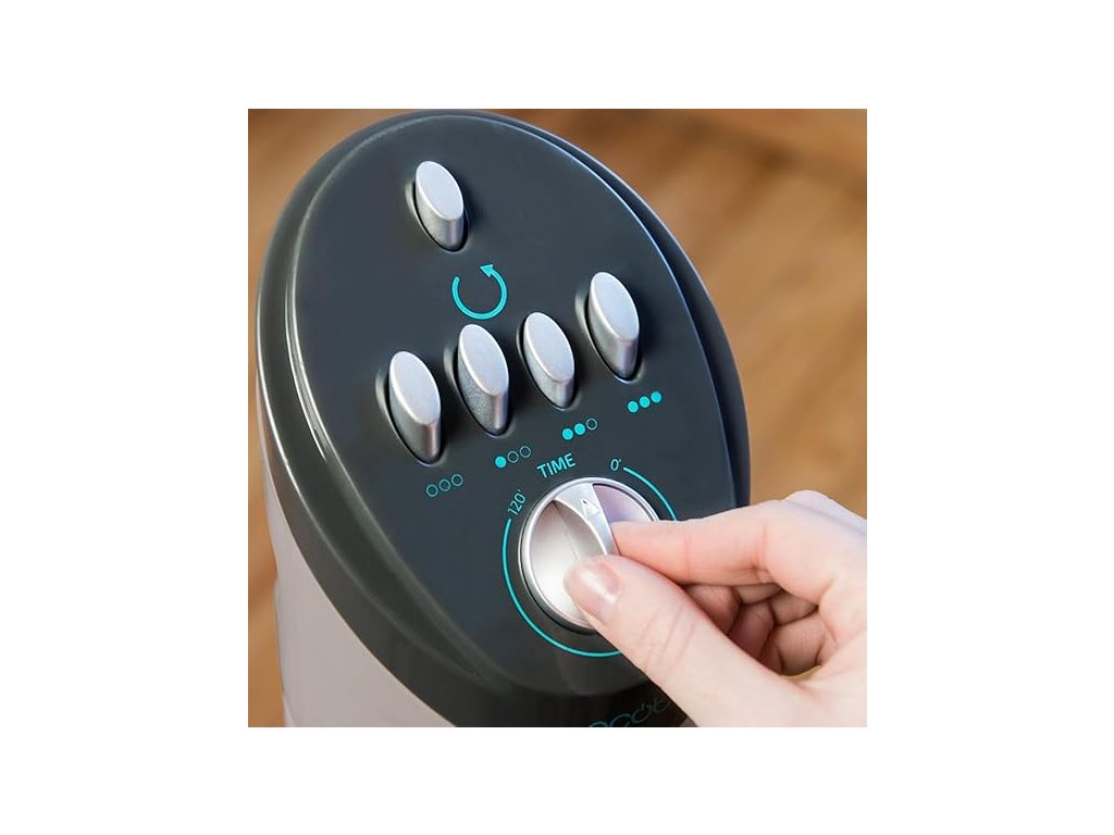- Vďaka technológii 3Speed Function si môžete vybrať z troch prevádzkových rýchlostí a prispôsobiť si intenzitu prúdenia vzduchu svojim potrebám. Ventilátor je vybavený programovateľným časovačom až na dve hodiny, po ktorých sa automaticky vypne, čo poskytuje maximálne pohodlie a úsporu energie.