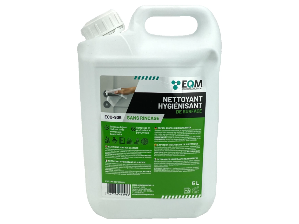 Profesionálny čistiaci a dezinfekčný prostriedok EQM ECO-906 je ideálnym riešením pre dôkladnú hygienu všetkých umývateľných povrchov. Vďaka účinnej formule bez obsahu bielidla zabezpečuje spoľahlivú dezinfekciu a zároveň je šetrný k povrchom aj používateľovi. Prípravok je vhodný na každodenné použitie v domácnostiach aj profesionálnych prevádzkach.