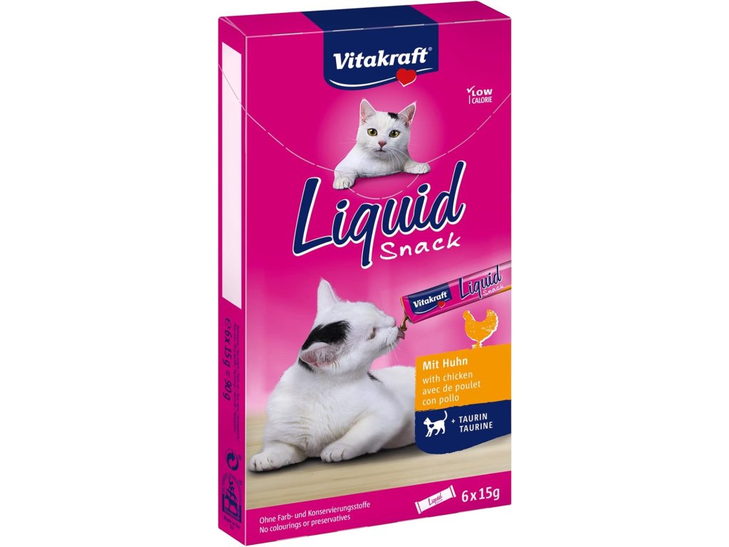 Vitakraft Cat Snack tekutý snack s kuracím mäsom – 6 x 15 g je lahodná pochúťka pre mačky s jemnou konzistenciou, ktorá sa ľahko podáva a zároveň podporuje zdravie. Obsahuje kuracie mäso a taurín, ktorý prispieva k správnej funkcii srdca a zraku. Snack neobsahuje umelé farbivá ani konzervanty, je vhodný pre mačky s citlivým trávením. Praktické balenie po 15 g je ideálne na doplnenie bežnej stravy alebo ako odmena počas dňa.