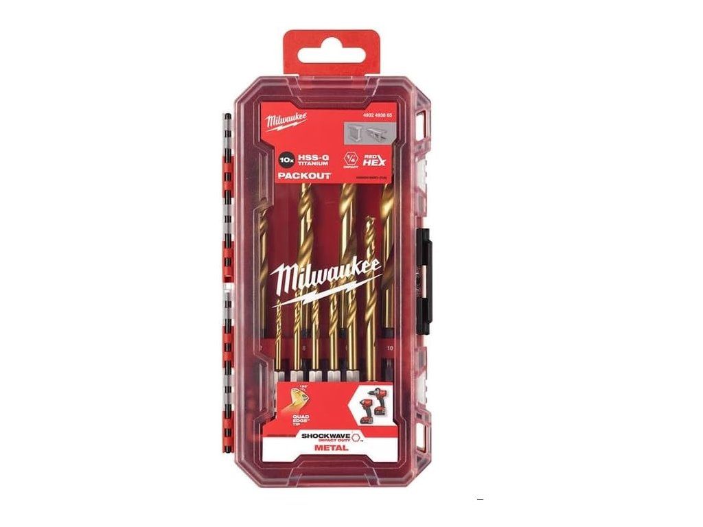Vrtáky do kovu Shockwave HSS-G TIN RED HEX 10 ks Milwaukee 4932493865-K37